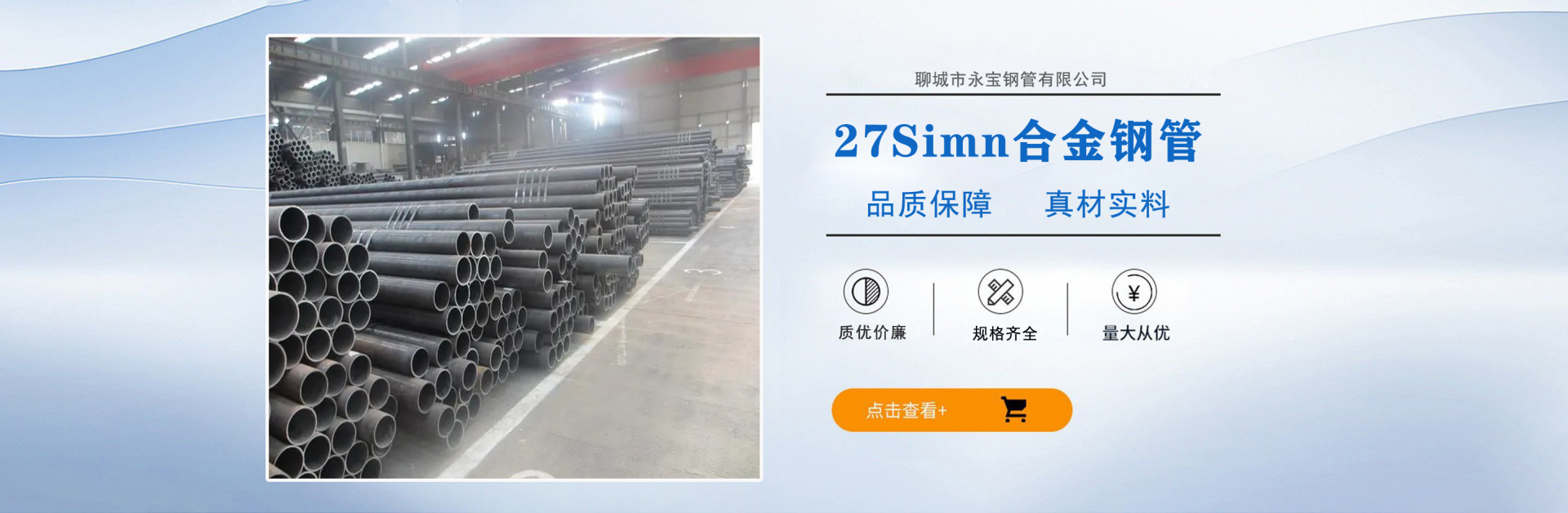 聊城市永寶鋼管有限公司是聊城較大的鋼管生產(chǎn)企業(yè)之一。地理位置優(yōu)越,交通十分便利。公司占地面積99000平方米,廠房占地面積42000平方米,員工365人,其中外聘高級工程師10人,高級管理人員8人,大專以上學歷56人。總資產(chǎn)達1.5億元,二期工程已籌備建設,完成后年出產(chǎn)能力可達到35萬噸。主營產(chǎn)品:27Simn合金鋼管,高壓鍋爐管,20G鍋爐管,厚壁合金鋼管,15CrMoG合金鋼管,42crmo合金鋼管,40crmo合金鋼管,20G合金鋼管,合金鋼管廠,鍋爐管廠 公司以先進的工藝、優(yōu)良的產(chǎn)品質(zhì)量、寬幅的產(chǎn)品組矩、優(yōu)質(zhì)的服務贏得中外鋼管行業(yè)的好評。本公司通過了ISO9001:2000國際質(zhì)量管理體系認證。 企業(yè)精神:“創(chuàng)新、求實、誠信、高效”; 企業(yè)作風:“嚴、細、實、快”; 企業(yè)工作方針:加強內(nèi)部管理,夯實基礎(chǔ),全面提高職工整體素質(zhì),使企業(yè)管理水平再上新的臺階。 公司宗旨:以服務求市場、以質(zhì)量求生存、以創(chuàng)新求進步、以科技求發(fā)展。...